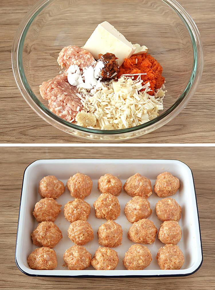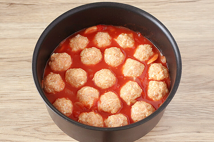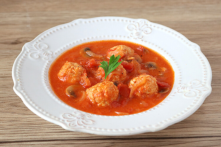 野菜入り柔らか鶏団子のトマトミルク煮