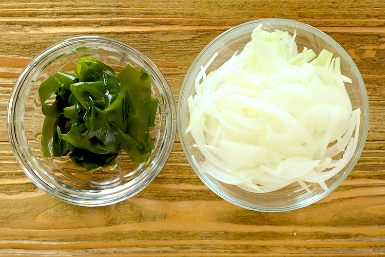 ・わかめは食べやすい大きさに切る。