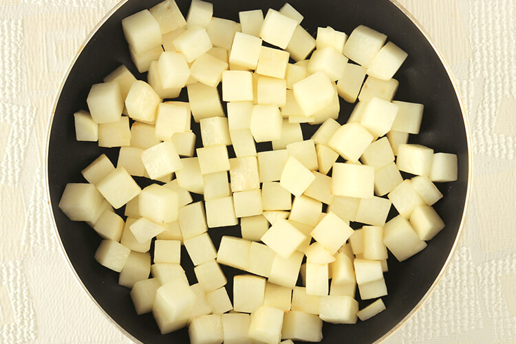 小鍋(もしくはフライパン)にオリーブ油を熱し、中火で大根を炒める。